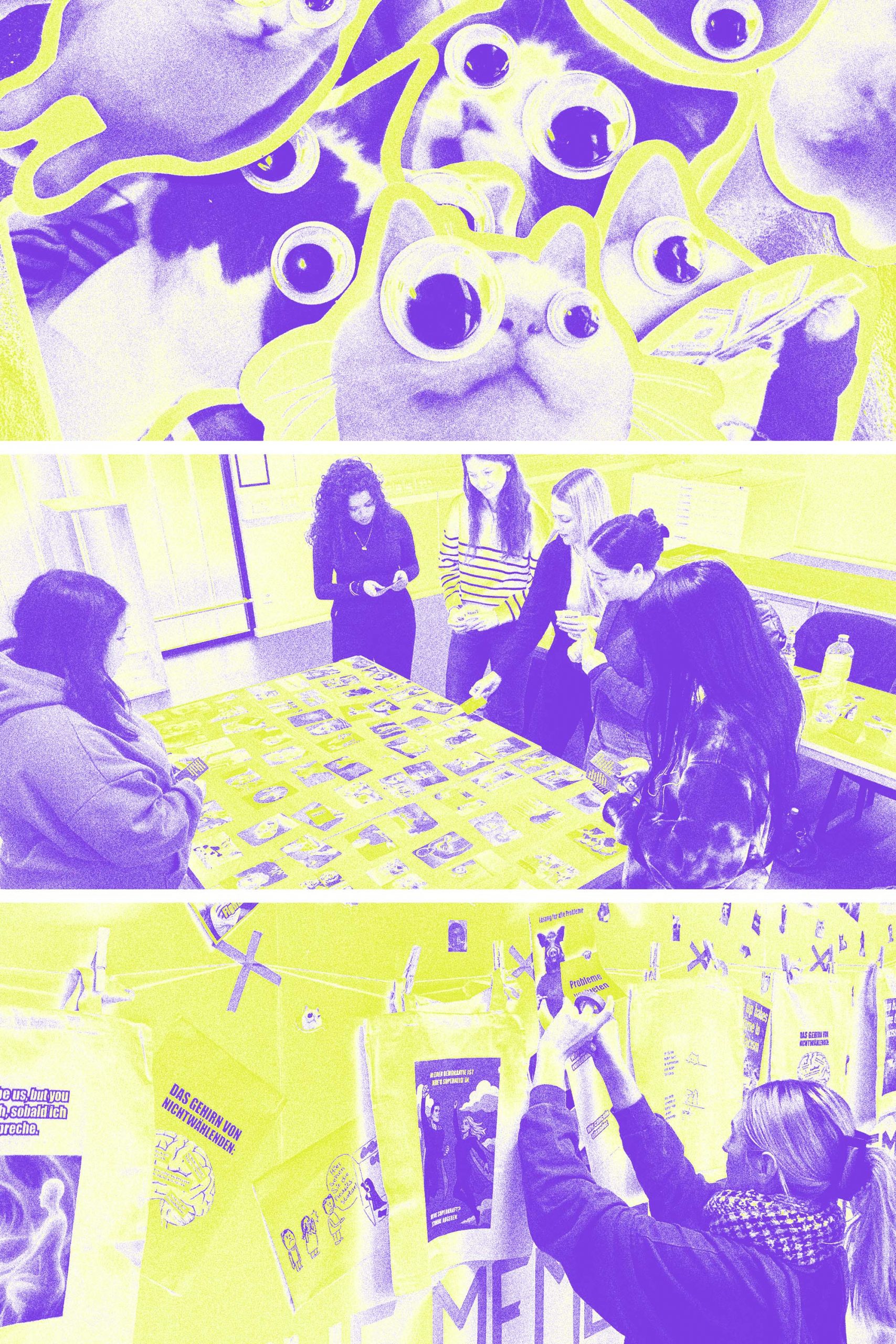 In einer digitalen Welt, die zunehmend von Polarisierung und Hate Speech geprägt ist, erforschen die Schüler*innen gemeinsam das Phänomen „Meme“. Sie experimentieren unter professioneller Anleitung mit analogen und digitalen Gestaltungstechniken und entwickeln dabei eine eigene visuelle Sprache für positive, demokratische Botschaften.