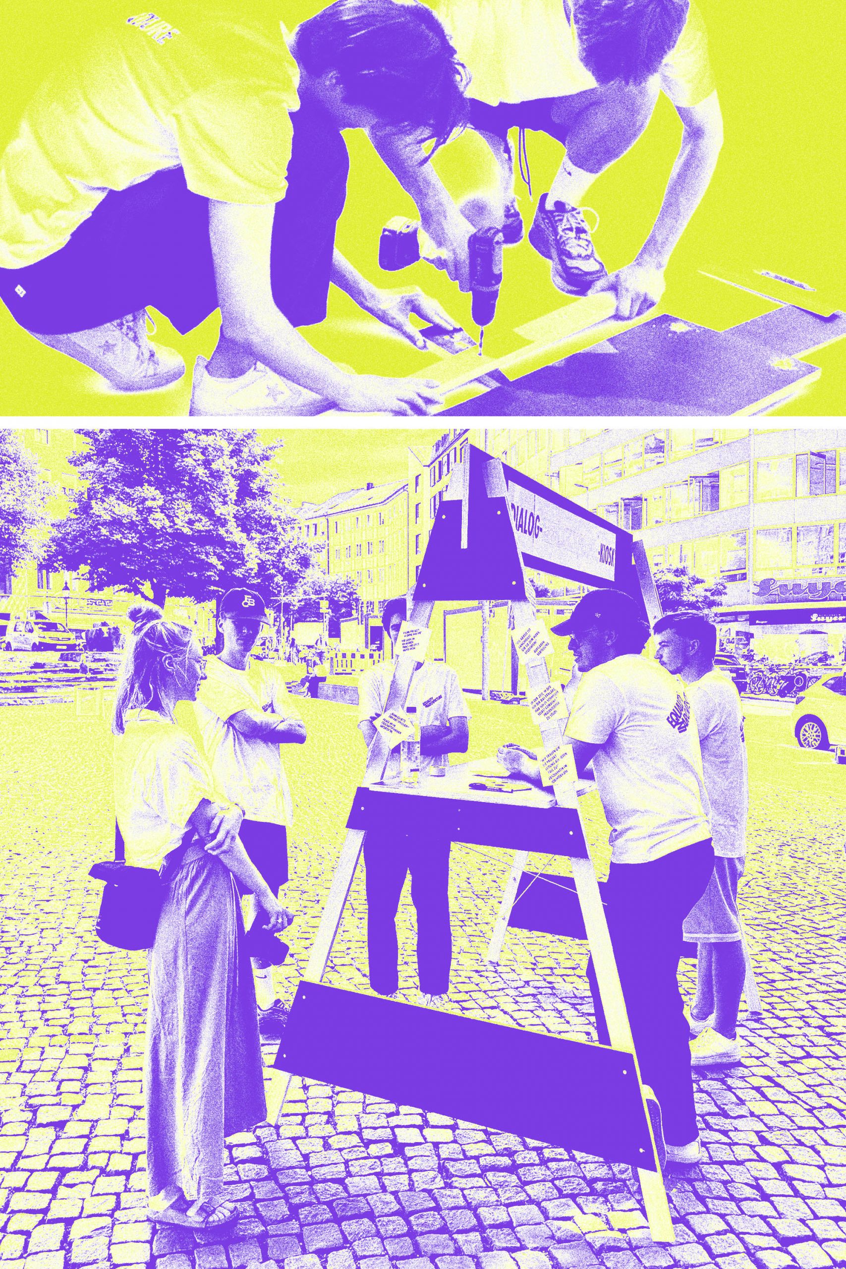 Dialogkiosk – the circular edition, ist ein experimentelles Bau- und Lernprojekt, in dem Studierende und Schüler:innen gemeinsam ein temporäres, modulares Stadtmöbel weiterentwickeln, aneignen und umsetzen. Ein vorhandenes bauliches Konzept bildet die Grundlage, wird jedoch im kollektiven Prozess diskutiert, angepasst und gebaut. Zum Einsatz kommen einfache, möglichst wiederverwendete Materialien. Architektur wird dabei als offener, gesellschaftlicher Aushandlungsprozess verstanden, der demokratische Prinzipien wie Mitbestimmung, Zugänglichkeit und Verantwortung räumlich verhandelt.
